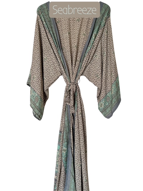 Unser Vintage Seidenkimono aus Ibiza ist ein echtes Unikat – handgefertigt aus recycelten indischen Saris.