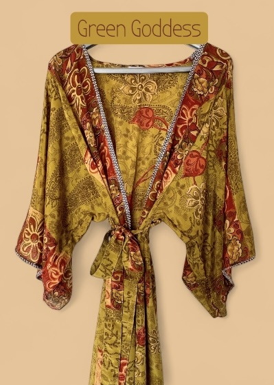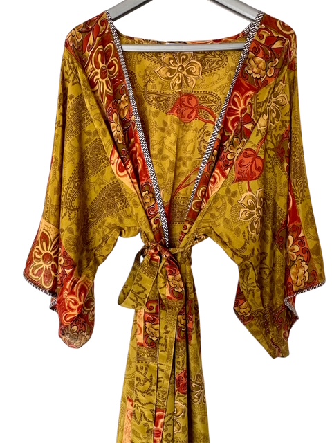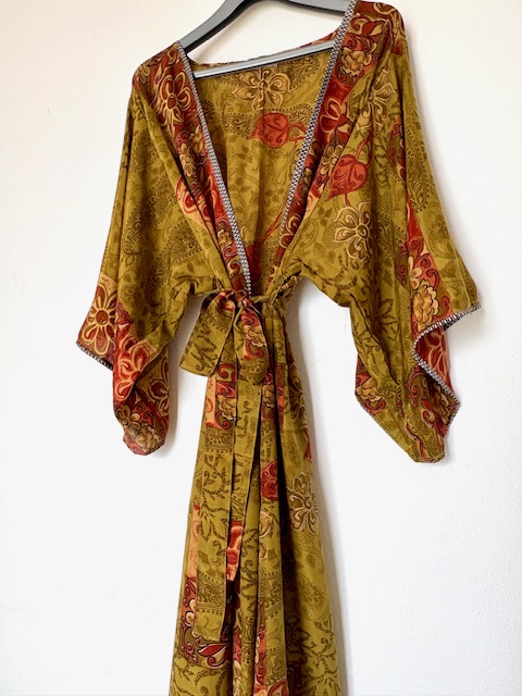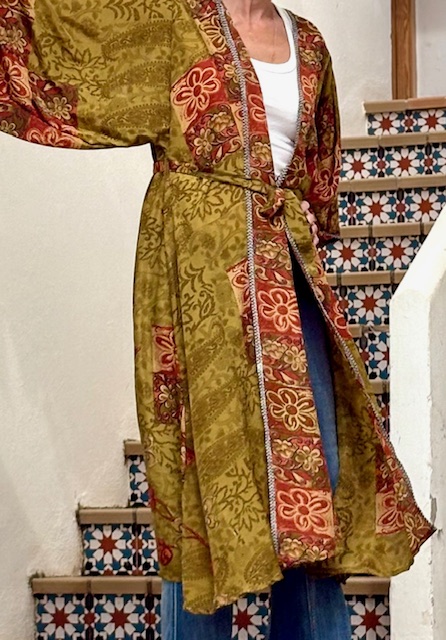 Unser Vintage Seidenkimono aus Ibiza ist ein echtes Unikat – handgefertigt aus recycelten indischen Saris.