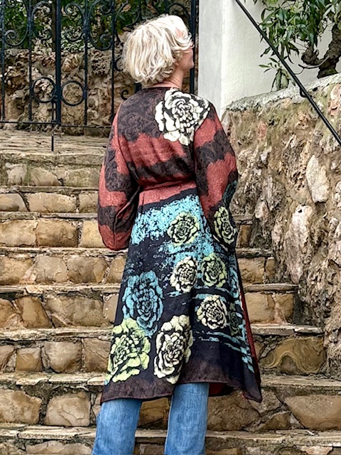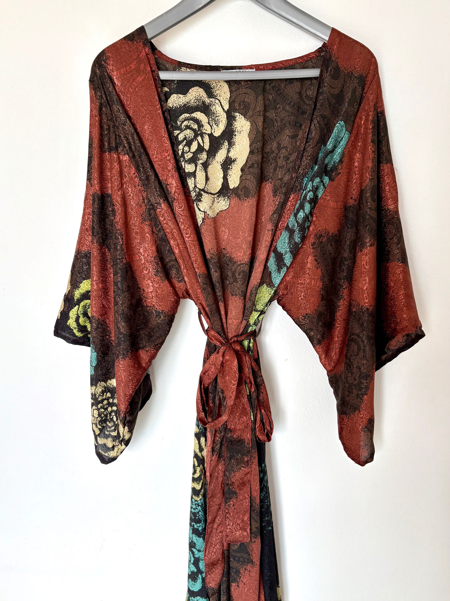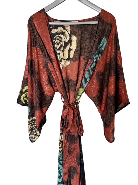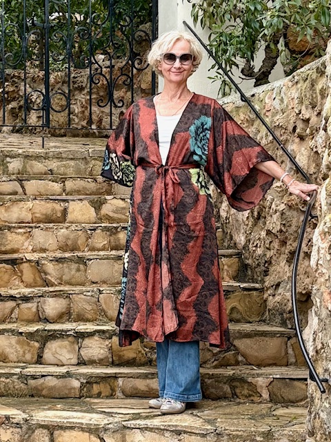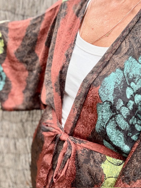 Unser Vintage Seidenkimono aus Ibiza ist ein echtes Unikat – handgefertigt aus recycelten indischen Saris.